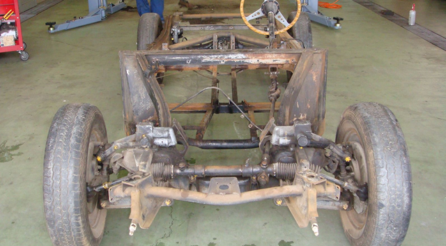 まずボロボロの車体のさび落しです、3日間くらいかかりました。