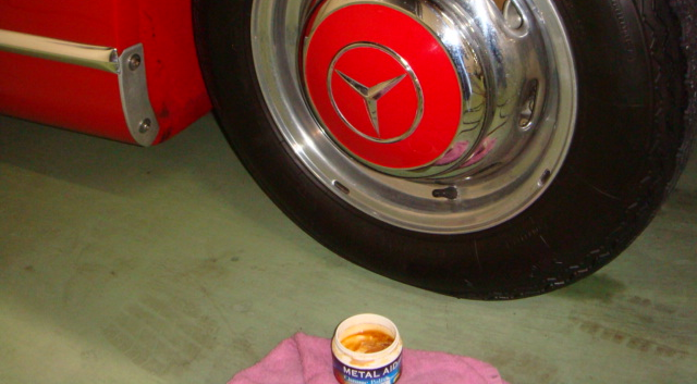 メタルエイドという磨き剤で傷をつけない様に磨いてからコート剤を塗布します。