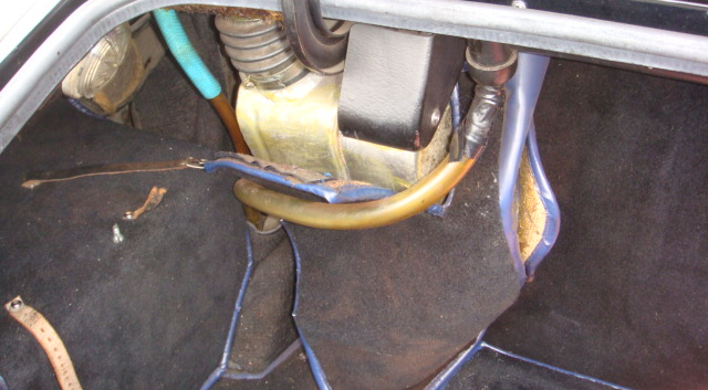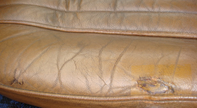 フロントシートは表皮も傷んでおり、クッションのスポンジも崩れています。